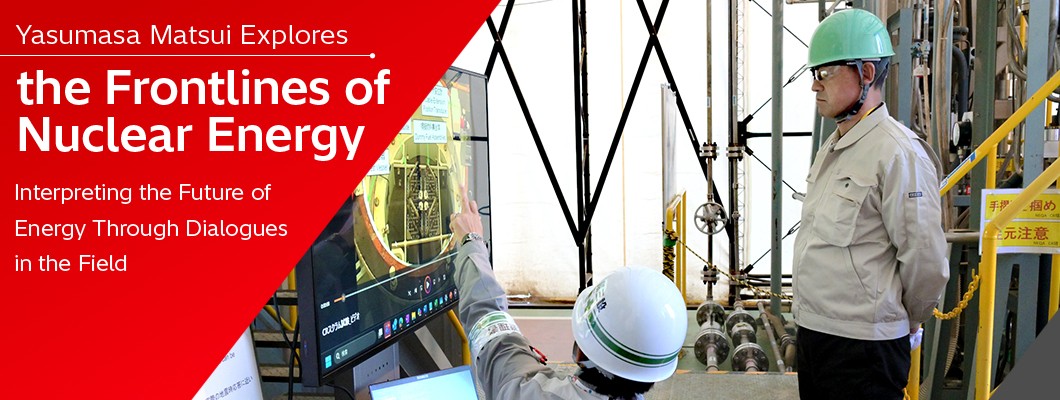 In the second installment, he visits Hitachi's Rinkai and Futo factories, which manufacture nuclear energy equipment, and reports on their manufacturing sites, training facilities, and testing facilities. Matsui explores the current state of frontline technologies that ensure nuclear safety, including metal casks supporting the nuclear fuel cycle, reactor internals for domestic nuclear power plants, training and seismic testing facilities, and the development of technologies to aid in the decommissioning of the Fukushima Daiichi Nuclear Power Station.